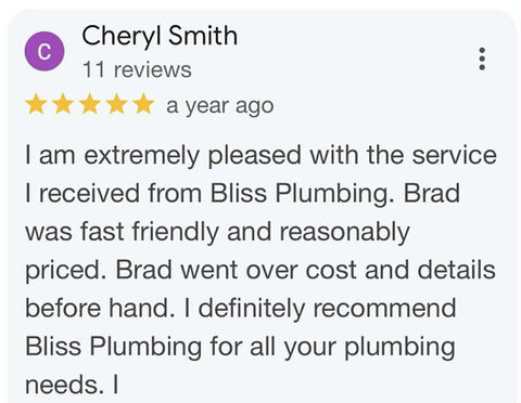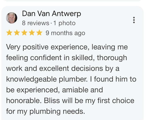 Brad has done several jobs at my home. Every time he has not only been a complete professional, but the work has been quality. I will for sure be using Bliss Plumbing for any projects in the future.